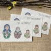 Les mini cartes sont illustrées par mes soins avant d’être imprimées en France sur un papier recyclé souple de 100g.