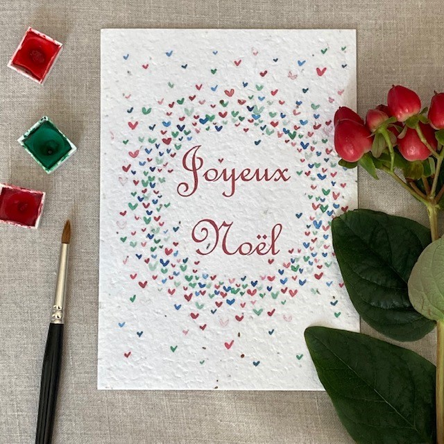 Couronne de cœurs Joyeux Noël – Carte à planter A6